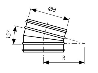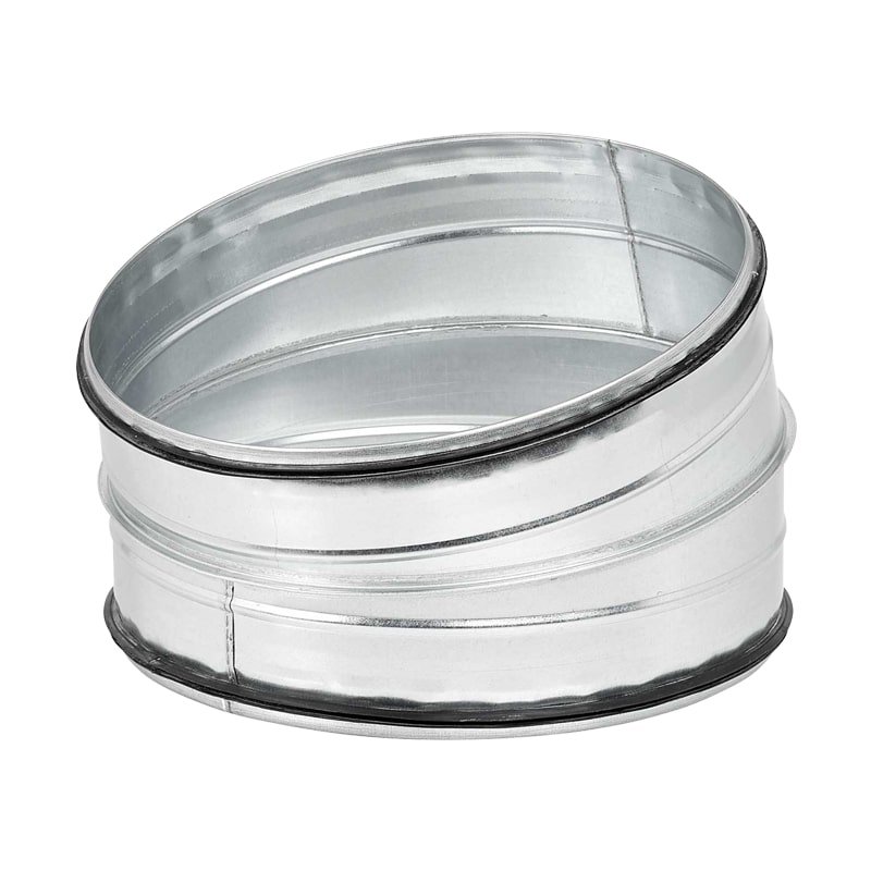 A round 15° segmented bend is a fitting designed for the smoothest possible change in the direction of a ventilation run. Unlike pressed bends, the segmented (welded) method is used to create bends of large diameters (from 250 mm and up).