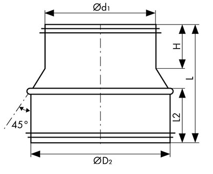 Below are the parameters for pressed reducers. Dimensions H and L2 indicate the length of the straight connection spigots.