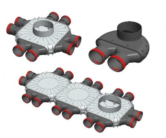 - Kolektori (OC, GM, PK, TPK): Sadales kameras gaisa plūsmu sadalīšanai vai savākšanai starp rekuperatoru un gaisa vadu tīklu.