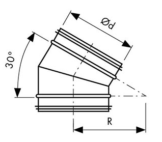 Круглый сегментный отвод 30° — это фасонный элемент, предназначенный для очень плавного изменения направления вентиляционной трассы. В отличие от >прессованных отводов, сегментный (сварной) метод используется для создания отводов больших диаметров (от 200 мм и выше).