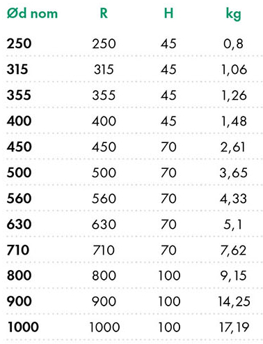 - Наличие: Стандартные сегментные отводы, представленные в таблице, всегда в наличии или поставляются в короткие сроки.